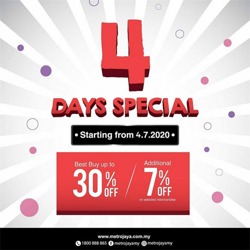 Metrojaya Malaysia is having their 4 Days Special Promo. Enjoy Great deals Amazing discounts and many more.