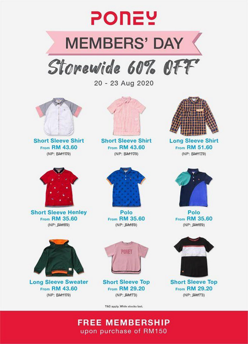 Poney Malaysia is having their Members Day Sale. Enjoy Members Day Sale Storewide 60% off.
