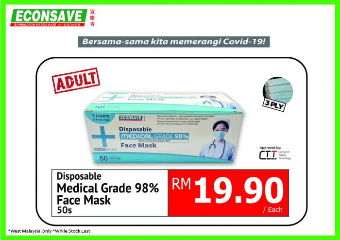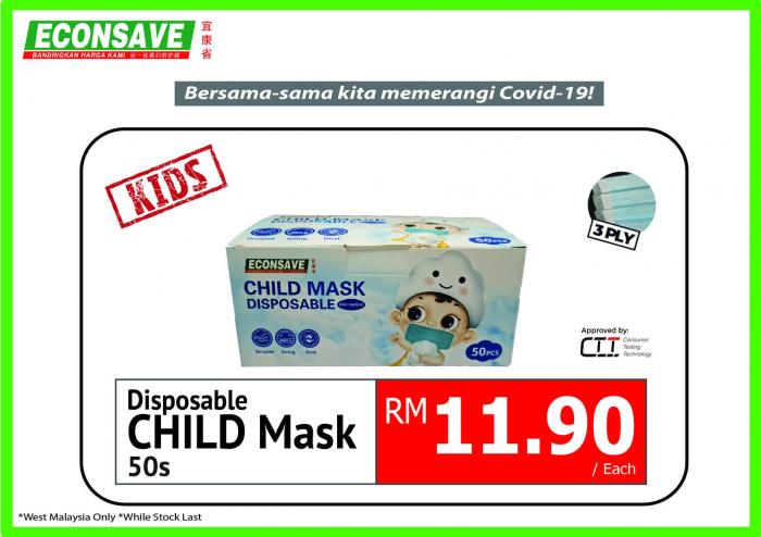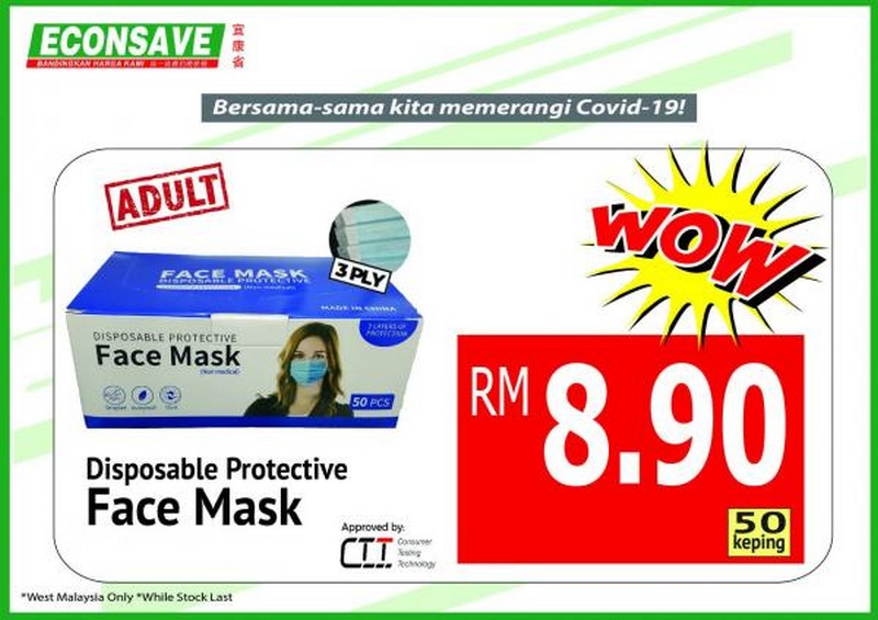 Econsave Disposable Face Mask 50pcs at RM8.90 Promotion at Peninsular Malaysia.