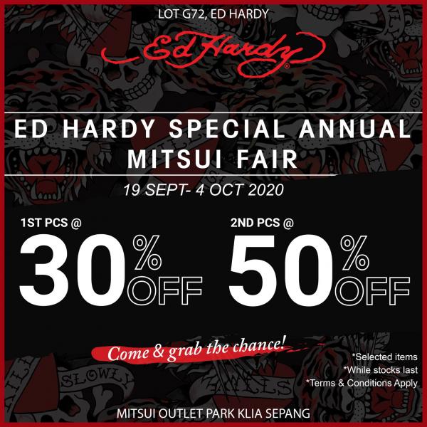 Ed Hardy Malaysia is having their Special Annual Mitsui Fair Sale at Mitsui Outlet Park. Enjoy Great deals Amazing discounts and many more.