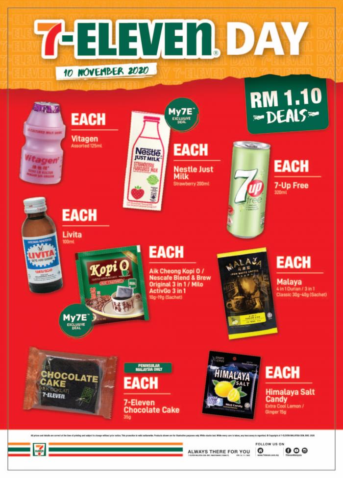 Enjoy daily deals and exclusive My7E member specials from 7th until 11th November 2020 in conjunction with 7-Eleven Day celebration.
