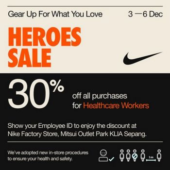 Show your staff badge to enjoy additional 30% savings on your purchases from 3 – 6 Dec at Nike Factory Store!