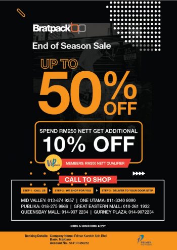 Bratpack Malaysia is having their End of Season Sale. Enjoy Great deals Amazing discounts and many more.