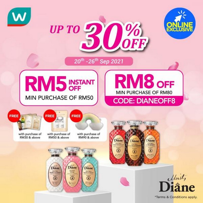 HEYYY Kaki Watsons & fans of Moist Diane! It’s time to pamper your lovely hair! Get exclusive deals online & enjoy up to 30% OFF* on Moist Diane products from 20 -26 September 2021 ONLY at Watsons ONLINE!