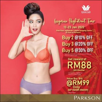 Visit Wacoal at Parkson highstreet fair at 1 Utama Shopping Centre (in front of Parkson) from 12 – 23 Jan 2022, Wacoal have got excited promotion just for you!