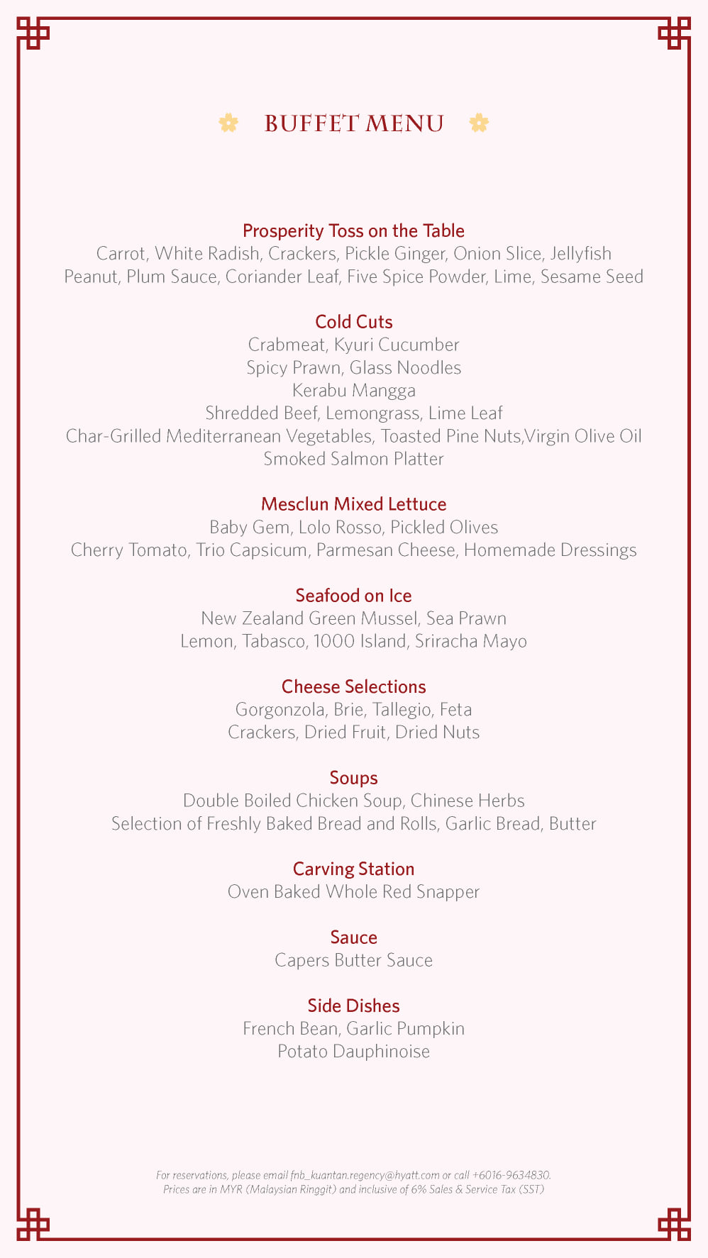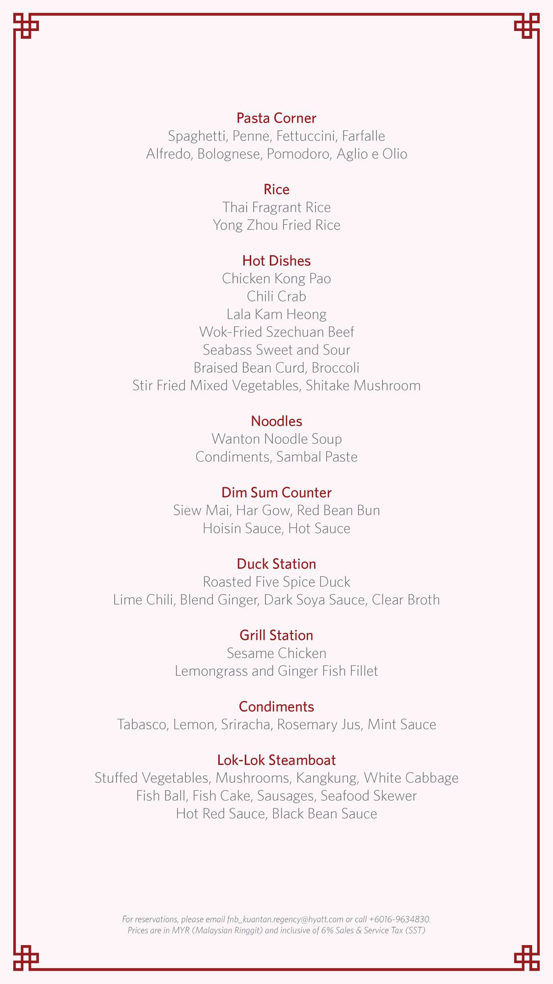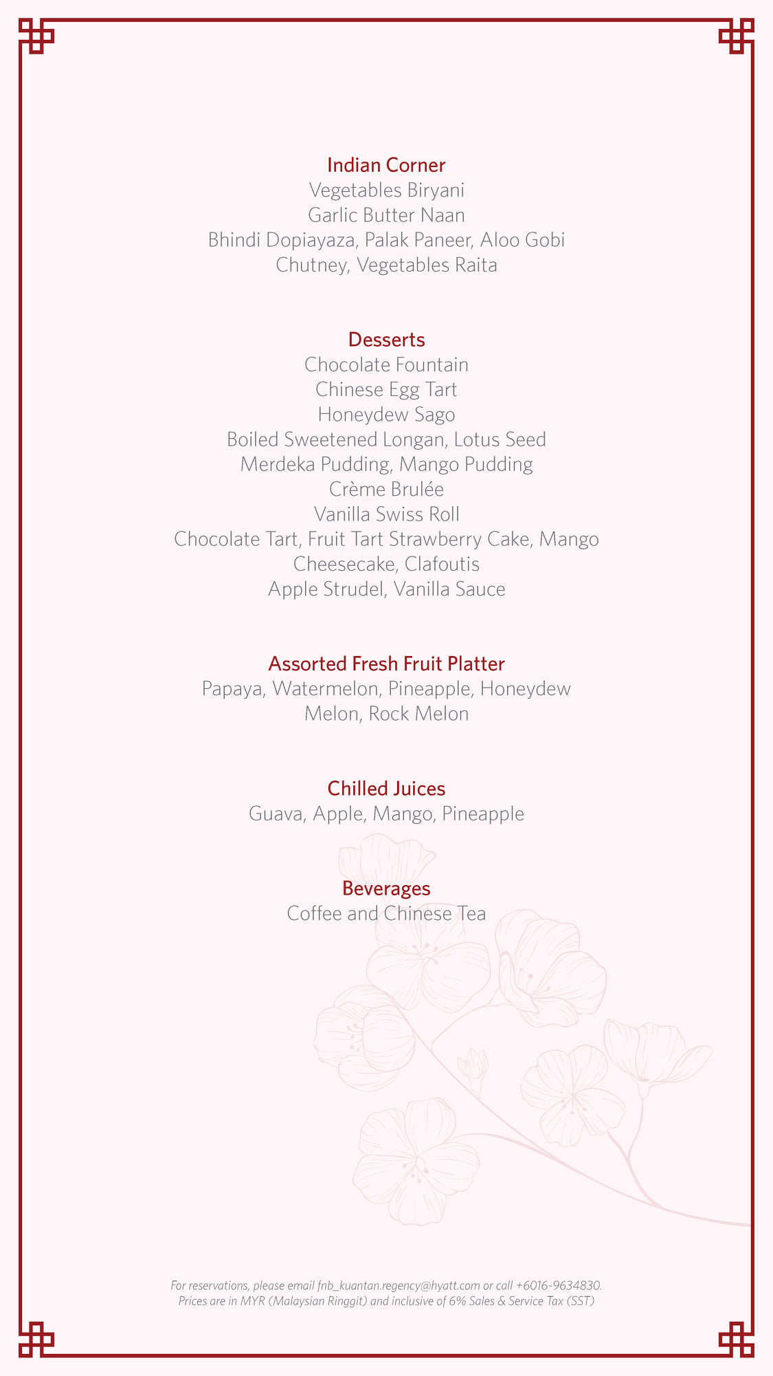 For reservations, contact us at +6016 963 4830 or email fnb_kuantan.regency@hyatt.com.