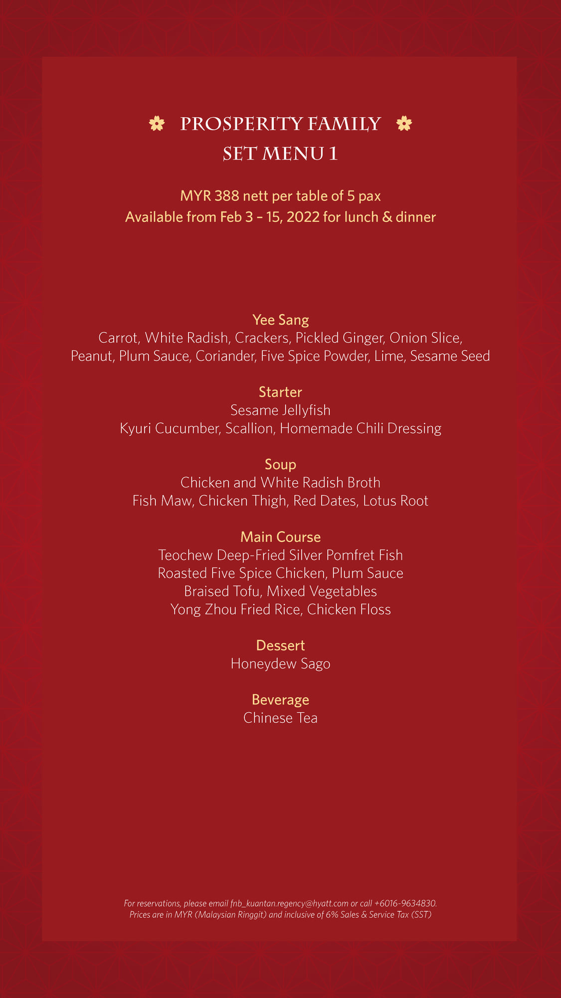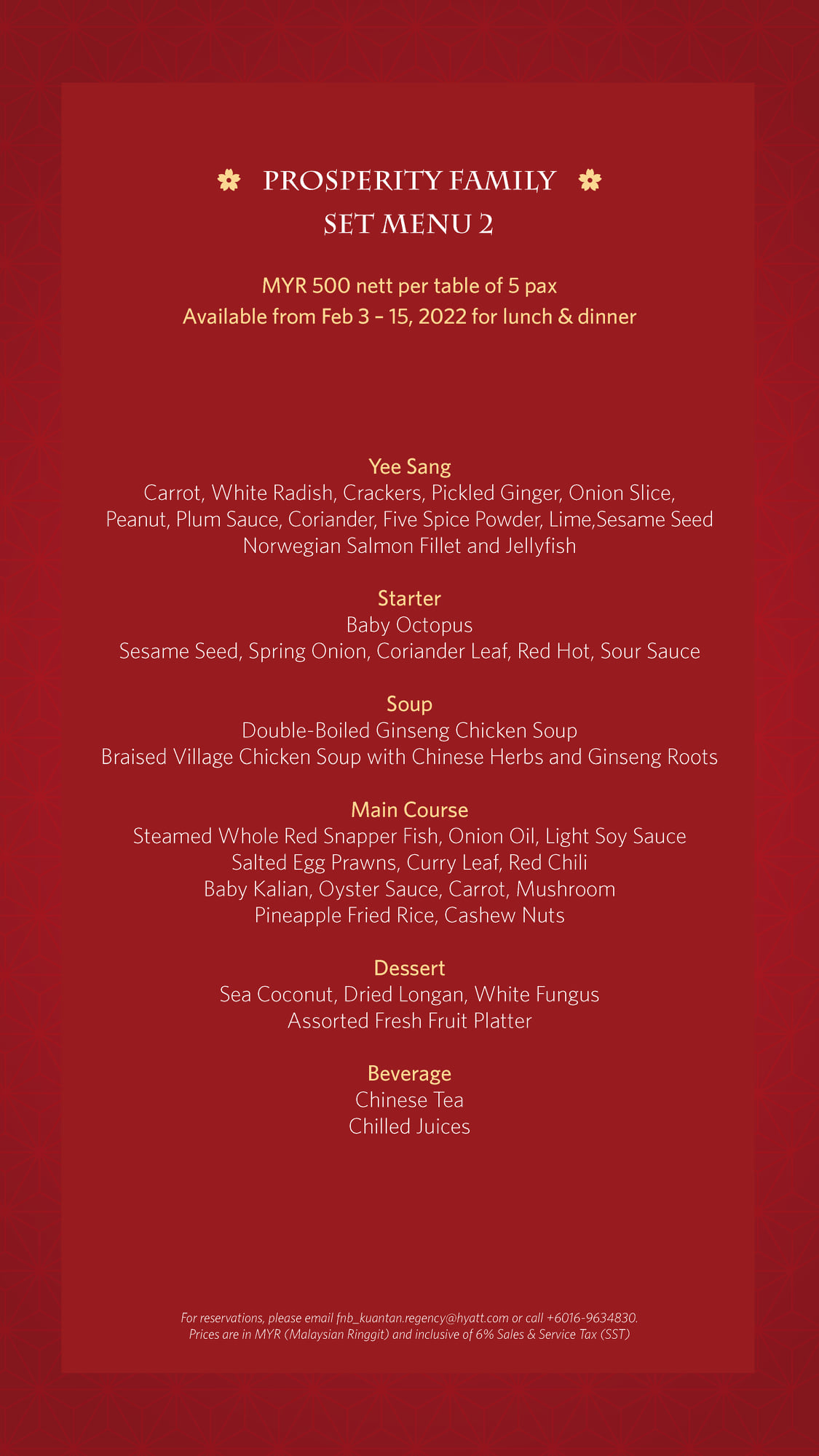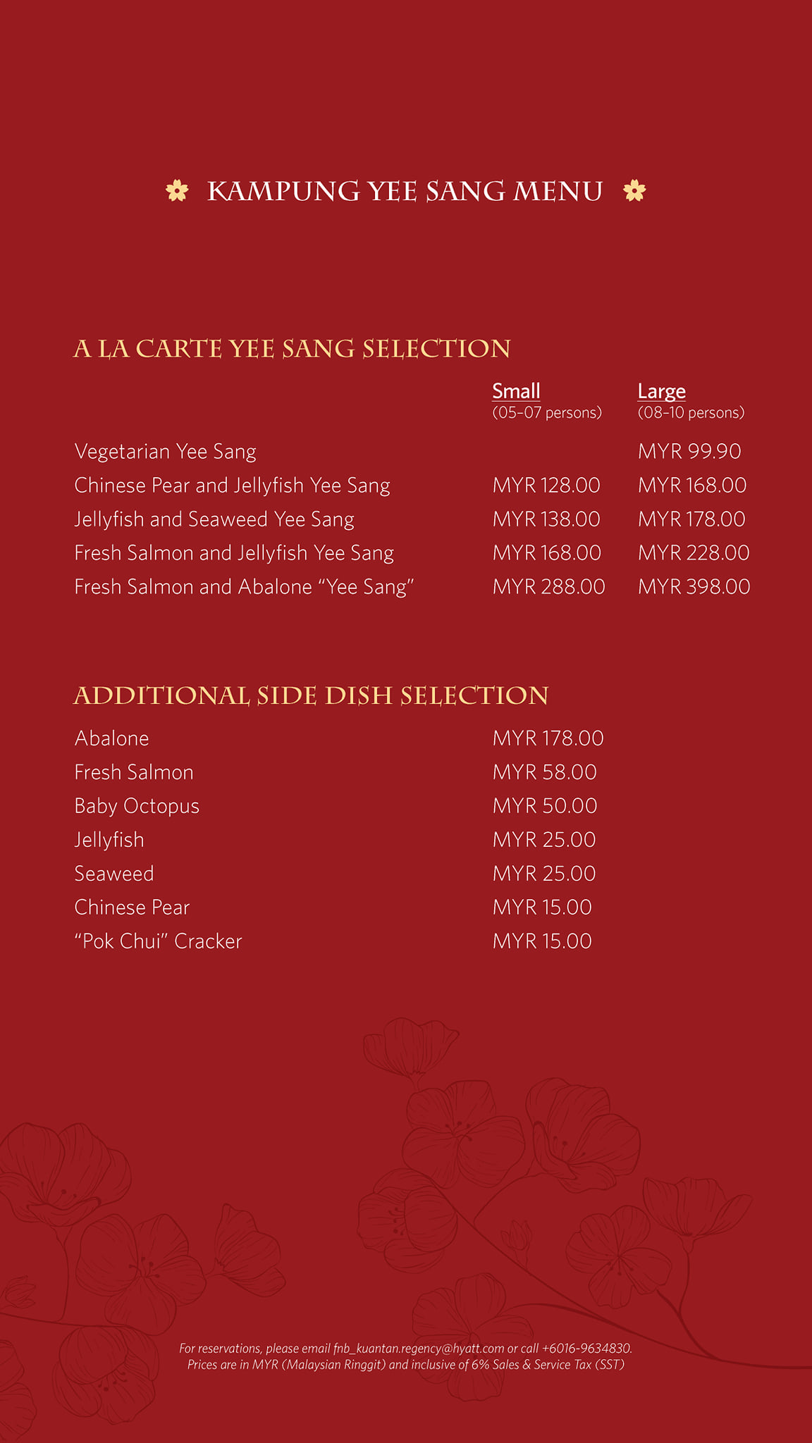 For reservations, contact us at +6016 963 4830 or email fnb_kuantan.regency@hyatt.com.