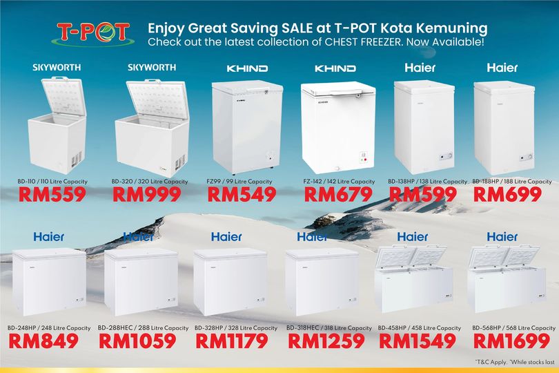 T-Pot Malaysia is having their Hot Promo Price. Need more space to keep food fresh and frozen? Take a look at the full range of sizes we have, and contact us to book your next chest freezer.