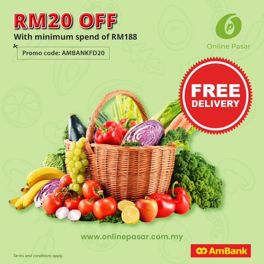 AmBank Malaysia is having their Online Pasar Promo. Enjoy RM20 off with minimum spend of RM188 at Online Pasar when you pay using your Ambank Card.