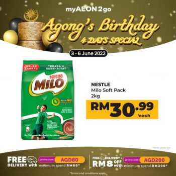 Order online via myAEON2go and get FREE Delivery too when you spend a min of RM80* with AGD80 or enjoy FREE Delivery + RM8 OFF when you spend a min of RM200* with AGD200 via myAEON2go.