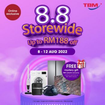TBM Malaysia is having their Online 8.8 Sale. Enjoy 8citing savings of up to RM188 OFF during this TBM x 8.8 Storewide Sale.