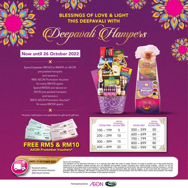 AEON Malaysia is having their Deepavali Hampers Promotion. Celebrate the light of happiness with the best festive delights.