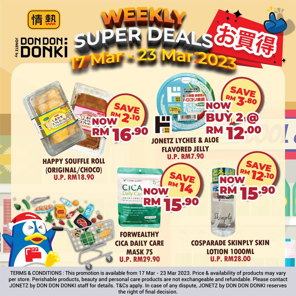DON DON DONKI Malaysia is having their Super Deals. Head over to your nearest DONKI store now as we are having special offers on a wide range of items from now until 23 March.