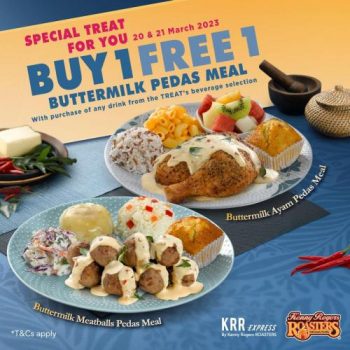 Kenny Rogers Roasters Malaysia is having their Buy 1 Free 1 Buttermilk Pedas Meal Promotion. Beli any drink*, you will entitled to Buy 1 Free 1 Buttermilk Pedas treat.