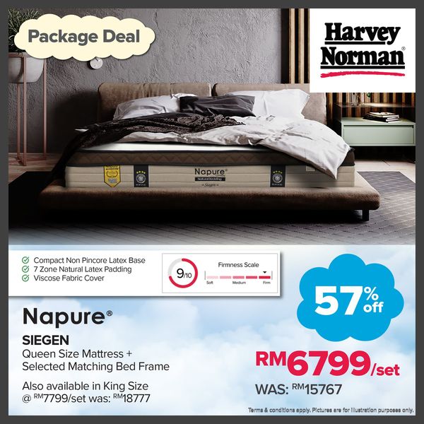 – RM200 Cash Rebate & FREE Upgrade to ComfortMark II Mattress Protector when pay with LatitudePay*