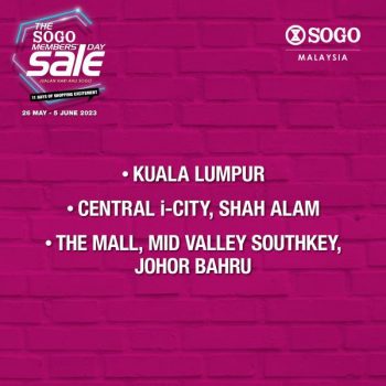 Attractive Deals, Fantastic Offers, and Mesmerizing Promotions – all in one – are waiting for you at SOGO upcoming Members’ Day Sale from 26 May till 5 June 2023 at all SOGO stores!