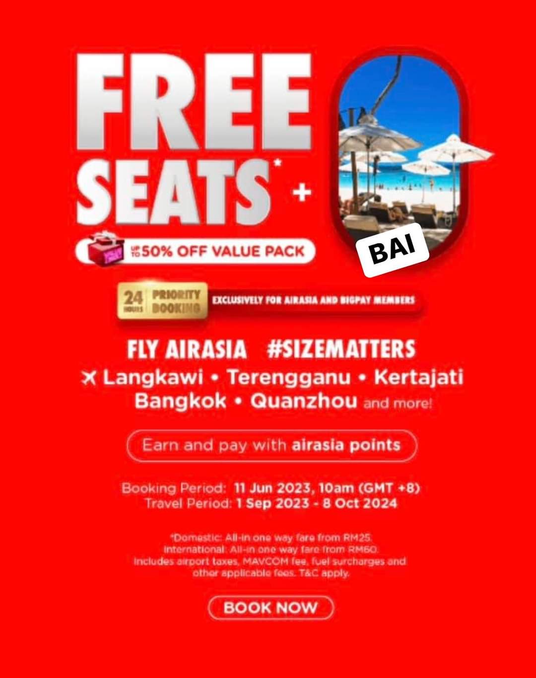 Airasia Malaysia is having their Big Sale Free Seat Sale. Enjoy Great deals on Airasia Big Sale Free Seat Sale.