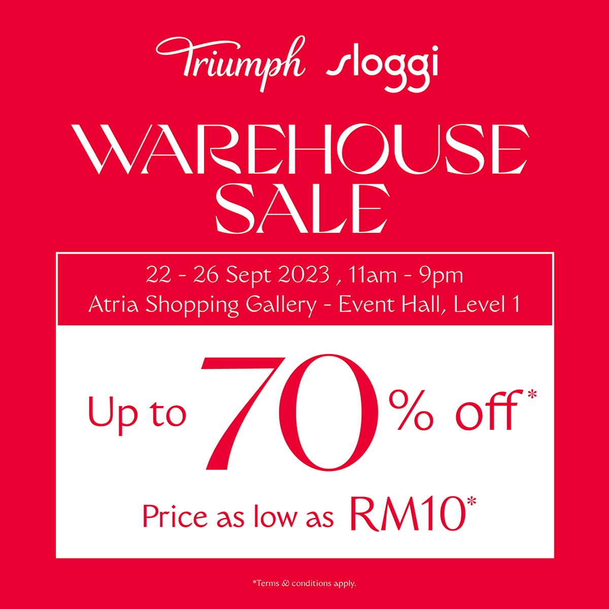 Mark those calendars and make your way to Atria Shopping Gallery ( Level 1 – Event Hall ) for an unmatched shopping experience. Don’t let this chance pass to upgrade your lingerie collection or surprise your special someone with a gift they’ll treasure. See you at the Triumph & sloggi Warehouse Sale!