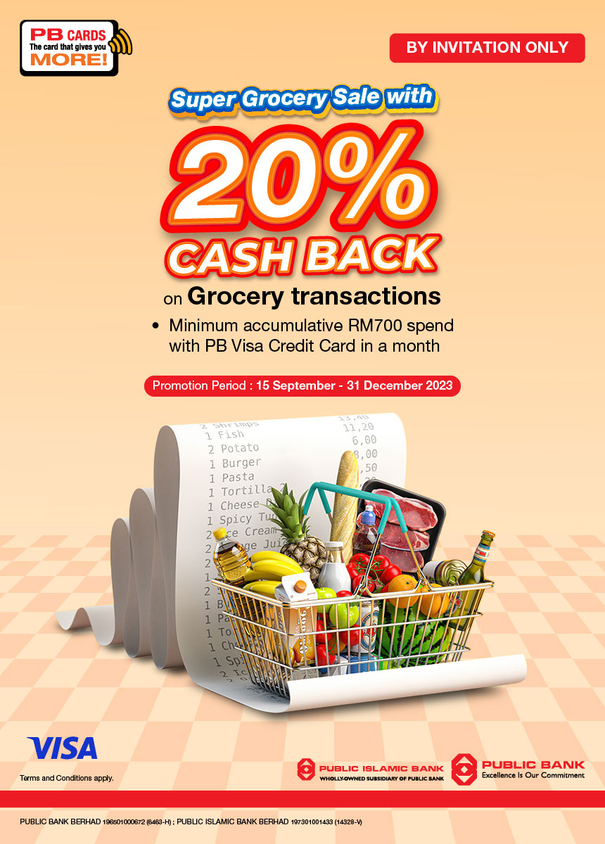 Public Bank Malaysia is having their Super Grocery Sale. Super Grocery Sale with 20% Cash Back.