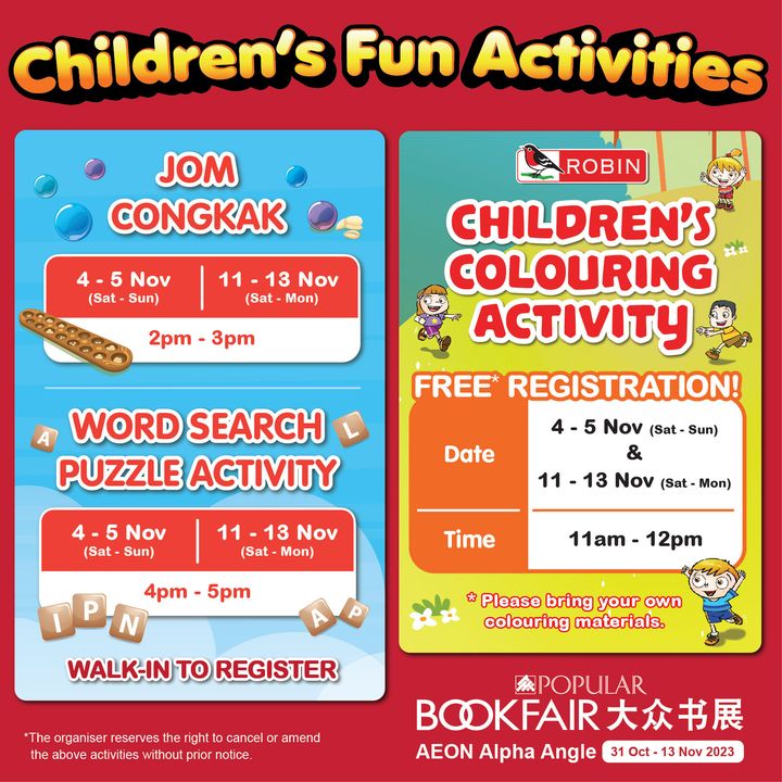 Get ready to fill your shopping bags with your favourite items at the POPULAR Bookfair in AEON Alpha Angle, Kuala Lumpur (Ground Floor, Centre Court)!