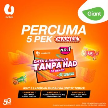 Giant Malaysia is having their Special Deal. Is this true? Did you know that you can get 5 packs of Mamee? FREE when you buy a U Mobile prepaid pack and top up RM10 and above.