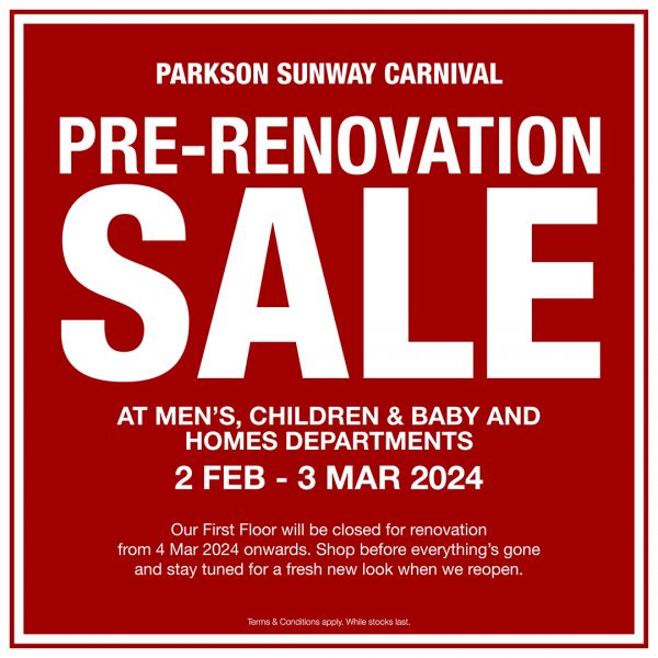 Parkson Malaysia is having their Pre-Renovation Sale at Sunway Carnival. Hey Northern folks, don’t miss this chance to grab your favourite Brands at rock-bottom prices from our Men’s, Children & Baby and Home department.