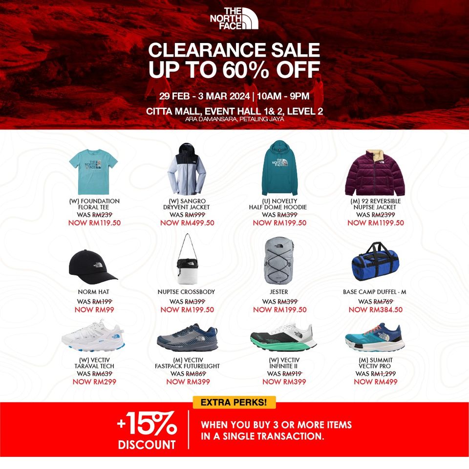 Join us at Citta Mall Event Hall from February 29 – March 3 for another epic round of jaw-dropping deals! Score up to 60% OFF on top-notch brands like The North Face, Reef, Salomon, and Herschel Supply Co.!