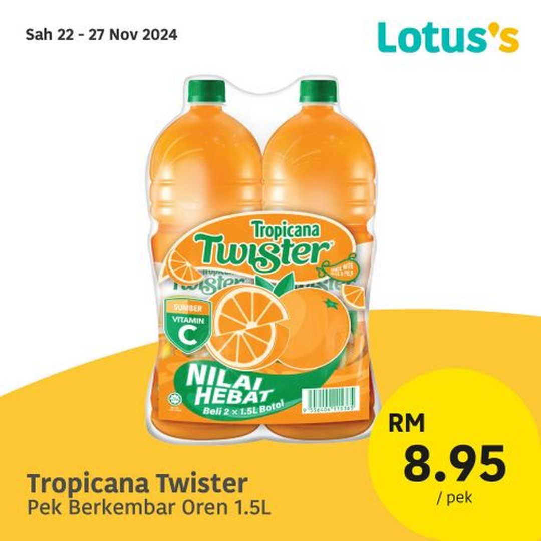 Start your day right with the iconic Milo drink! Stock up on this large refill pack for just RM33.99. It’s a great way to keep the whole family energised without breaking the bank. - Tropicana Twister Orange (1.5L Twin Pack) – RM8.95