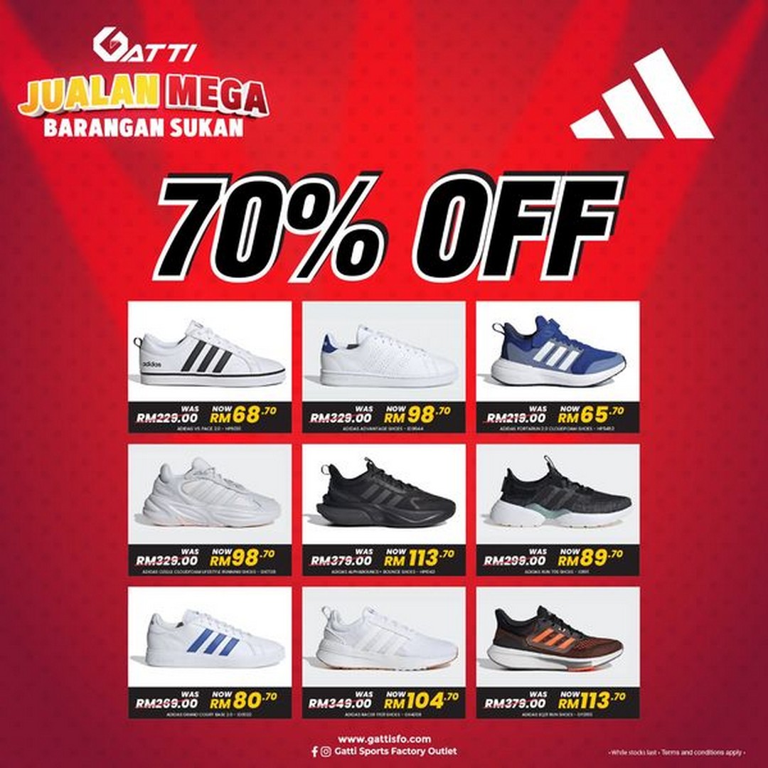 - Perfect for Families and Sports Enthusiasts The Gatti Sports Fair offers something for everyone, whether you’re a parent looking to outfit your kids with sports shoes or an athlete looking to upgrade your gear. You’ll find deals on children’s shoes, casual footwear, and sports apparel, making it a great stop for the whole family. Plus, with 2 pairs of kids’ shoes for only RM80, it’s an offer you won’t want to miss.