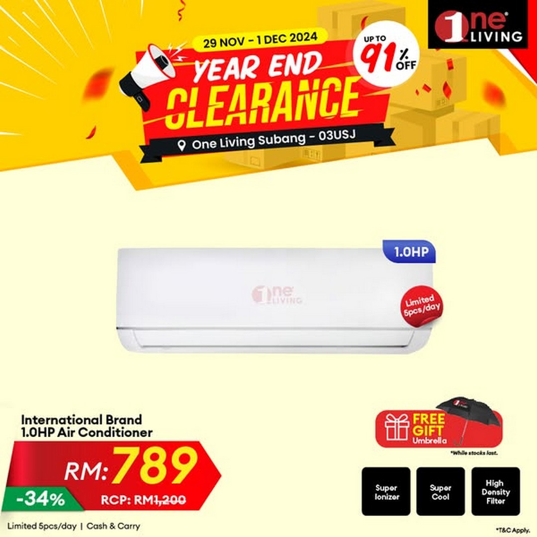The Year-End Clearance Sale will take place at One Living Malaysia’s Subang Jaya store, conveniently located in Taman Seafield Jaya, Selangor. If you’ve been planning to stop by, make sure to set your calendar for the sale dates: 29 November to 1 December 2024. That’s three whole days of great discounts, so don’t miss out!
