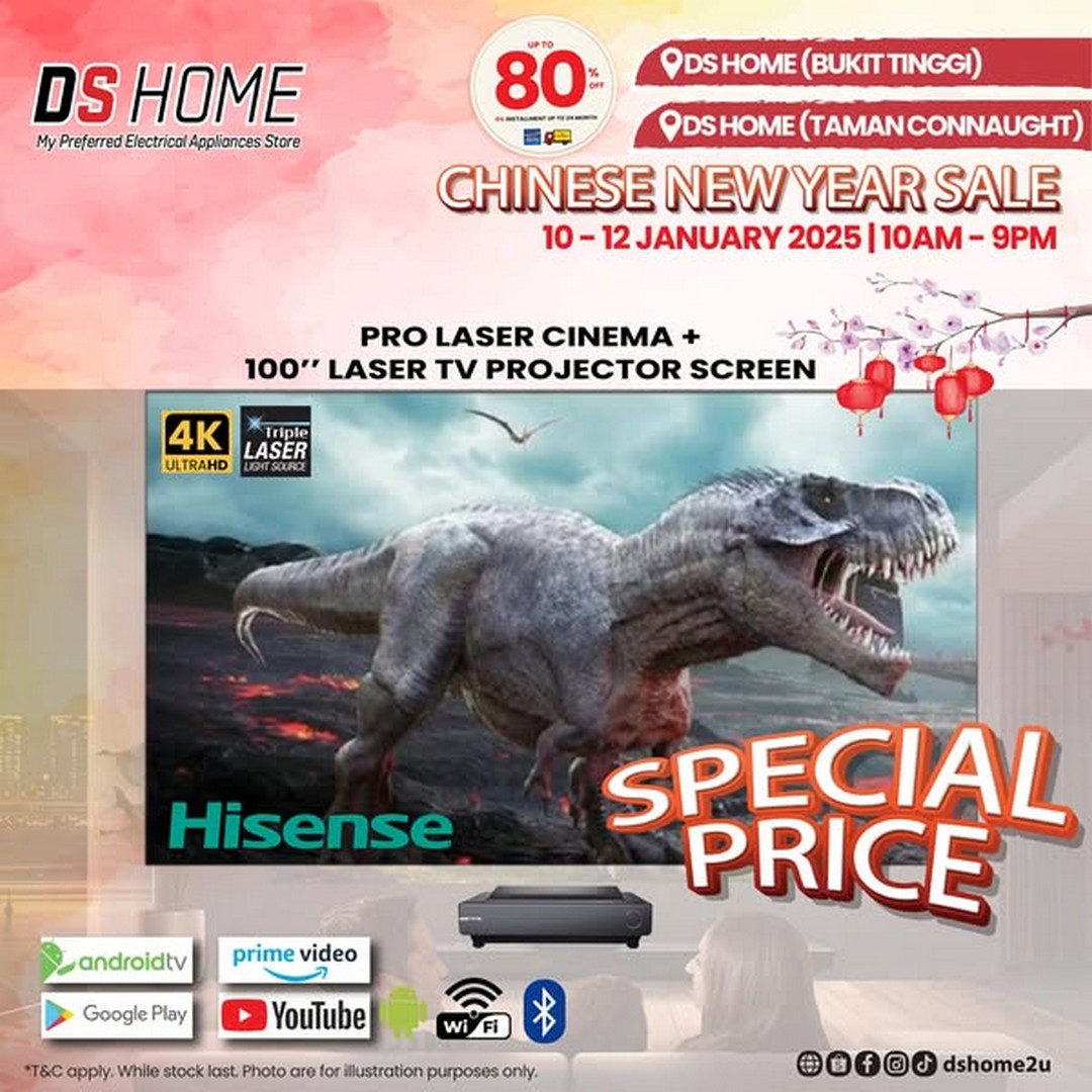 The DS HOME CNY Sale is a once-in-a-year event that offers unbeatable prices on top-quality home appliances, furniture, and more. With discounts of up to 80%, fast delivery, and the option to pay in instalments, this is the perfect time to make those home upgrades you’ve been putting off. But remember, it’s only available for 3 days — from 10-12 January 2025, so you’ll need to act quickly to grab the best deals.