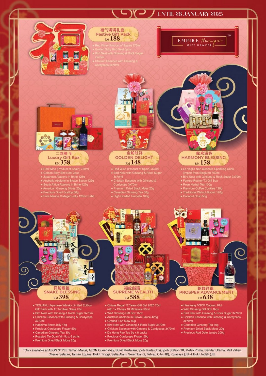 Visit your nearest AEON store or shop online at myAEON2go to take advantage of these fantastic deals and make this year’s celebrations extra special. Whether you’re buying a hamper to send to family or friends or looking to impress a business partner, AEON has everything you need to celebrate in style.