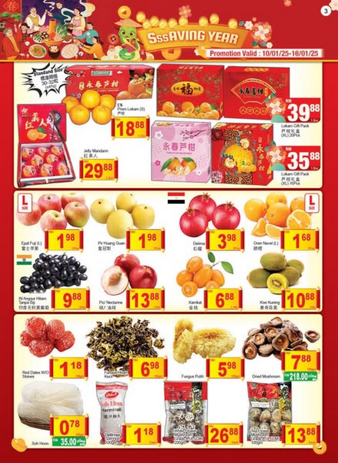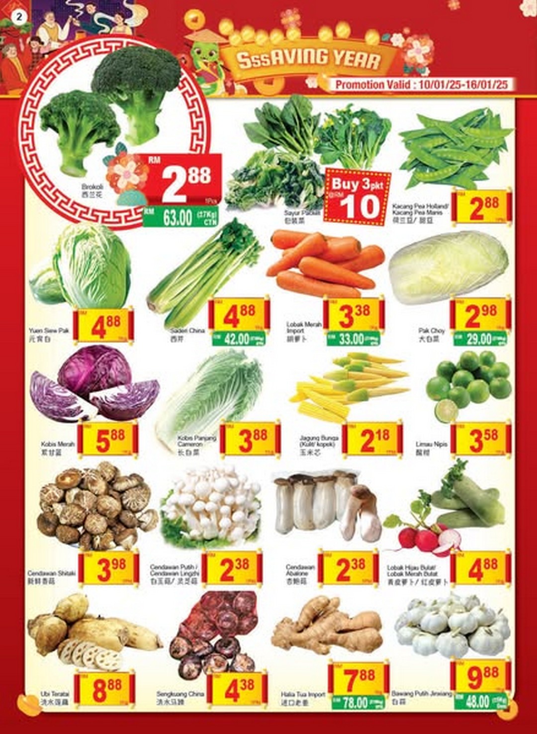 And let’s not forget the fresh produce! Econsave’s sale includes discounts on a wide range of fruits and vegetables, perfect for creating that traditional Chinese New Year spread of delicious dishes. With special offers on everything from fresh brokol (broccoli) to red dates and lokam gift packs, you’re sure to find everything you need for your celebrations.