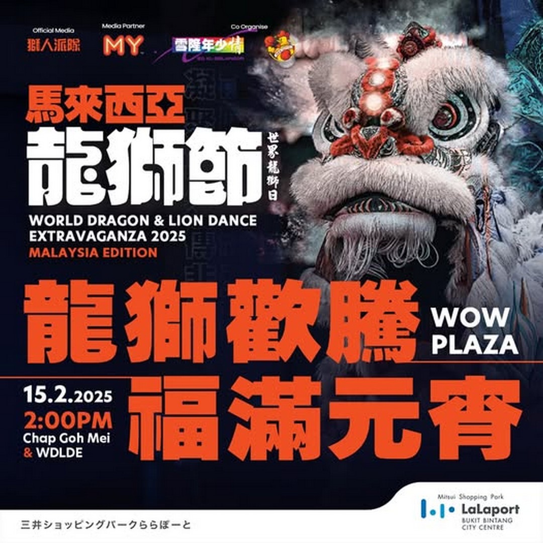 For those who love the thrill of traditional performances, LaLaport Bukit Bintang City Centre is the place to be this Chinese New Year season. On 15 February 2025, the WoW Plaza at LaLaport BBCC will host an electrifying lion dance performance by the World Dragon Lion Dance Extravaganza (WDLDE). This isn’t just any lion dance; it’s set to be one of the grandest, most exhilarating displays ever seen in the heart of Kuala Lumpur.