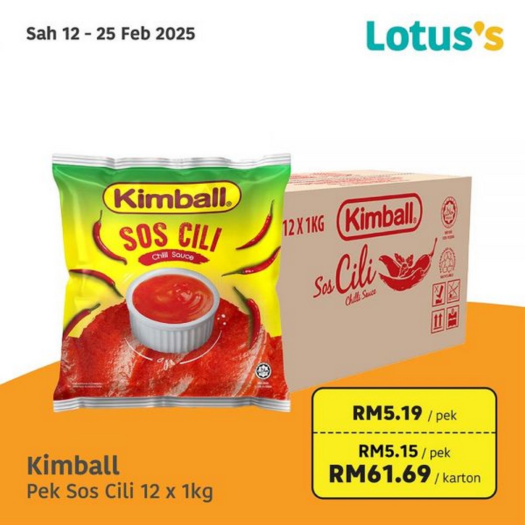 - Kimball Chili Sauce (12 x 1kg) – RM61.69 per carton