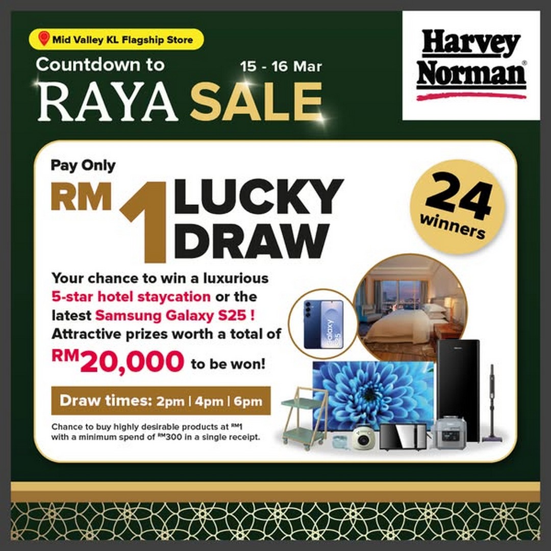 But that’s not all—Harvey Norman is also adding a dose of excitement with a Lucky Draw, where shoppers stand a chance to win incredible prizes, including a luxurious 5-star hotel staycation and the latest Samsung Galaxy S25. Plus, there are guaranteed vouchers and prizes up for grabs, making it an event not to be missed!