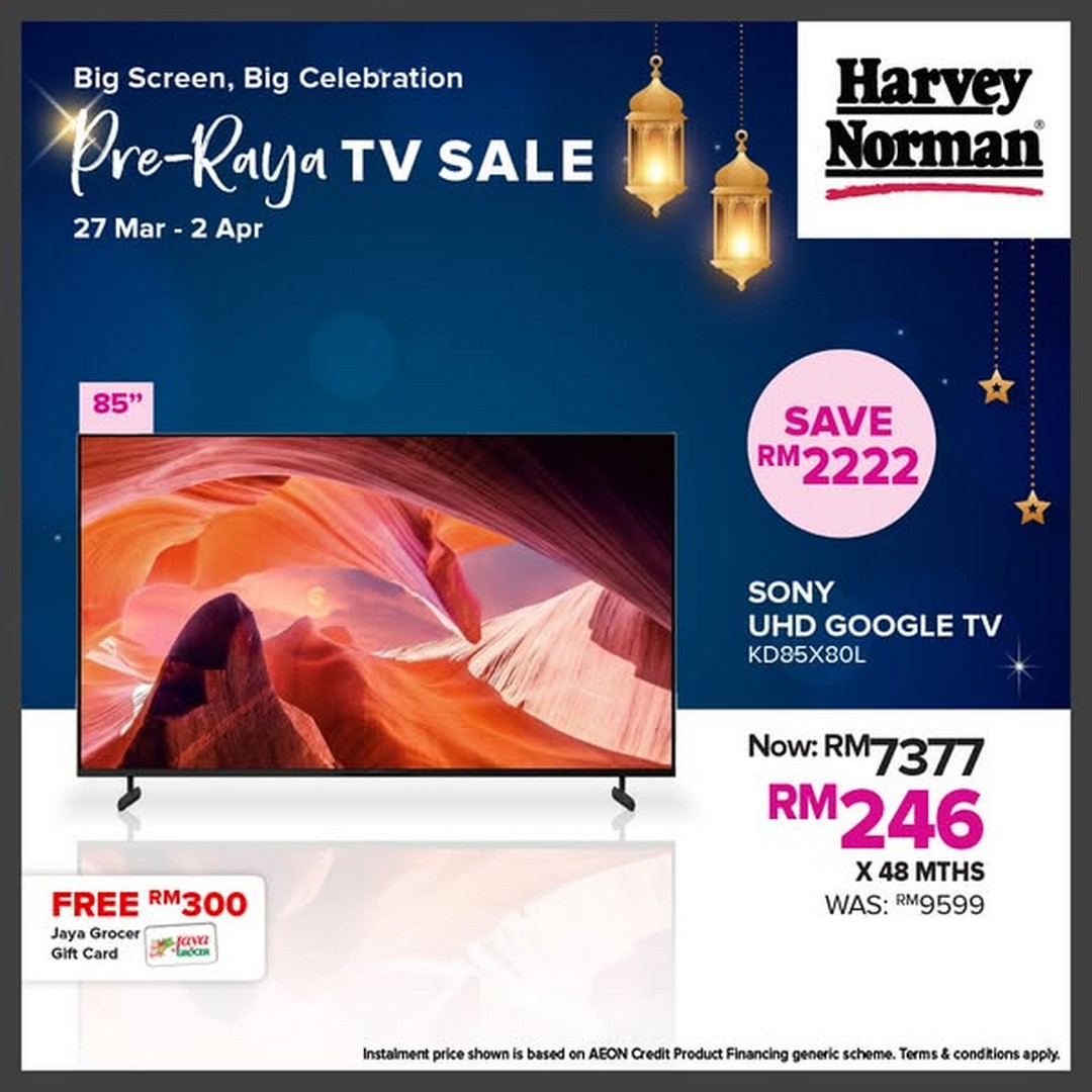 This limited-time promotion runs from 27 March to 2 April 2025. If you’re planning to upgrade your home entertainment system, there is no better time than now. Take advantage of the discounts, secure your free Jaya Grocer Gift Card, and get your home Raya-ready with a brand-new TV. Head to Harvey Norman Malaysia today before the sale ends!