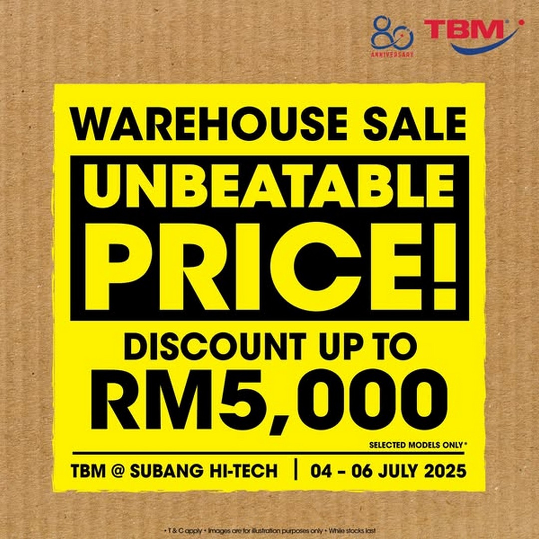 Here are just a few of the attractive deals and highlights awaiting visitors at the TBM Subang Hi-Tech Warehouse: