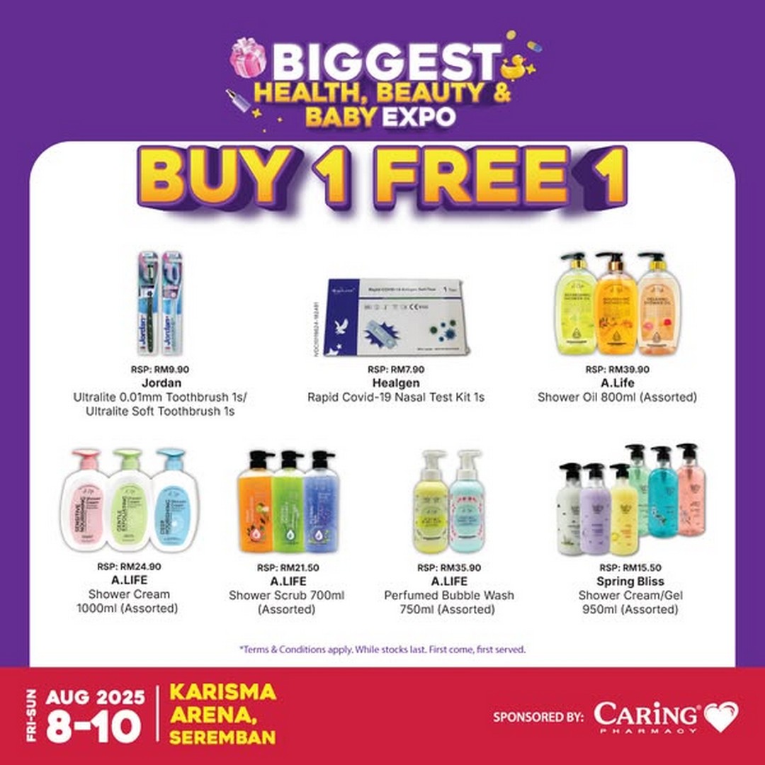 If you’re the kind of shopper who enjoys great savings and loves discovering bargains that genuinely make your wallet breathe a sigh of relief, then you’re in for a treat this August. CARiNG Pharmacy, a household name in Malaysia when it comes to affordable healthcare and wellness products, is rolling out an irresistible Buy 1 Free 1 Madness Sale. Taking place for only three days, from 8 to 10 August 2025, this promotion will be held exclusively at Karisma Arena in Seremban, running daily from 9am to 9pm.