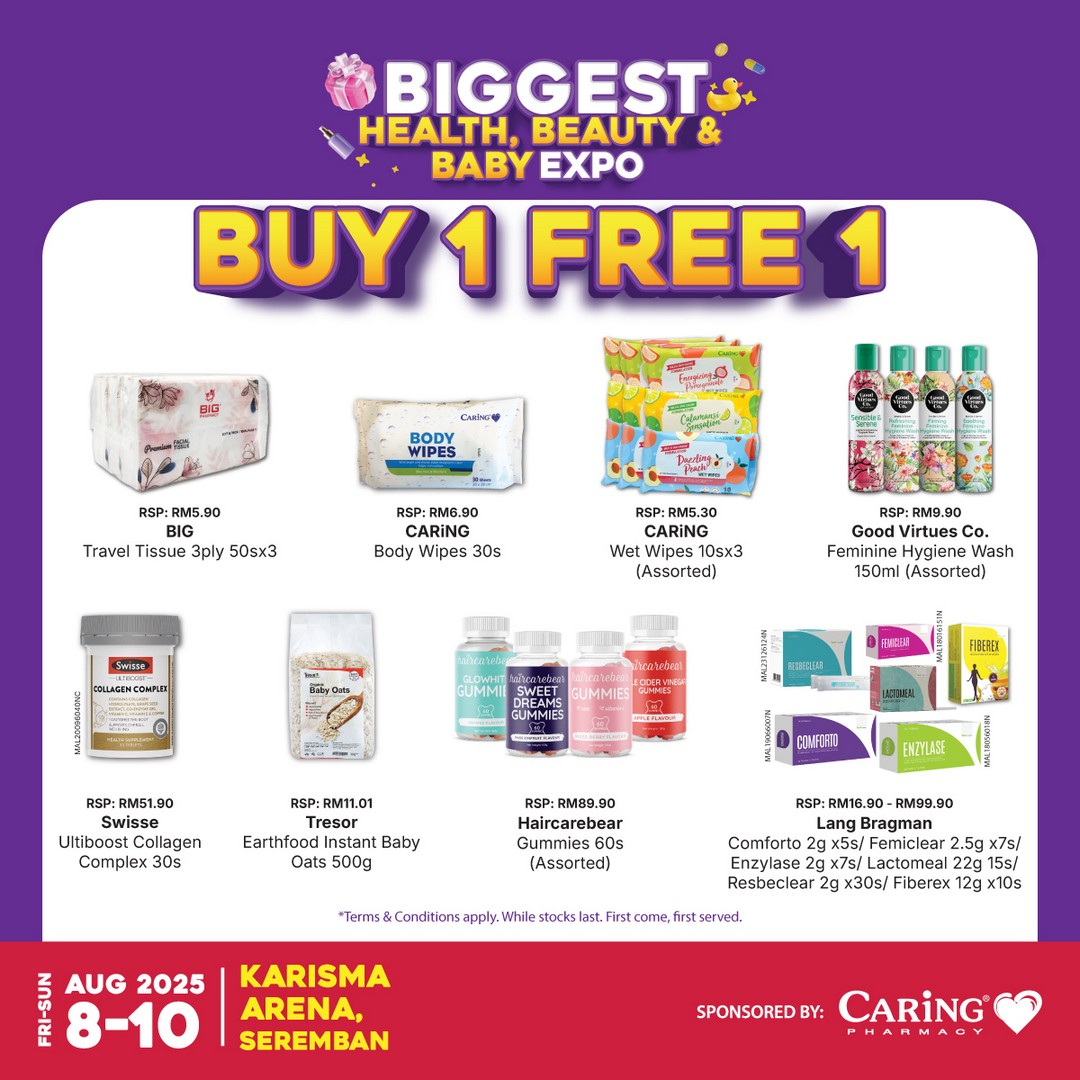 In an age where stretching every ringgit counts, this CARiNG Pharmacy Buy 1 Free 1 Madness Sale is not just a fleeting promotion – it’s a smart opportunity for shoppers to stock up on essentials, explore new products, and make the most of their spending. Whether you’re a bargain hunter, a busy parent, a working professional, or someone looking after their health or the health of loved ones, there’s something valuable to be gained from attending.