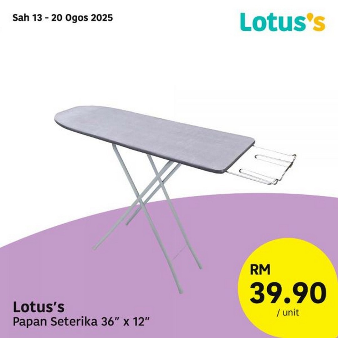 Lotus’s has not forgotten household necessities either. Shoppers can pick up Lotus’s Tisu Tandas Tiga Lapis Luxury 10R x 200s for just RM 9.99 per pack, and Lotus’s Cecair Pencuci Serba Guna 2L Aneka at RM 7.49 per unit. Keeping the home clean and well-stocked has never been easier or more affordable. Additionally, for those looking to refresh their ironing setup, Lotus’s Papan Seterika 36” x 12” is available at RM 39.90 per unit, combining practicality with value.