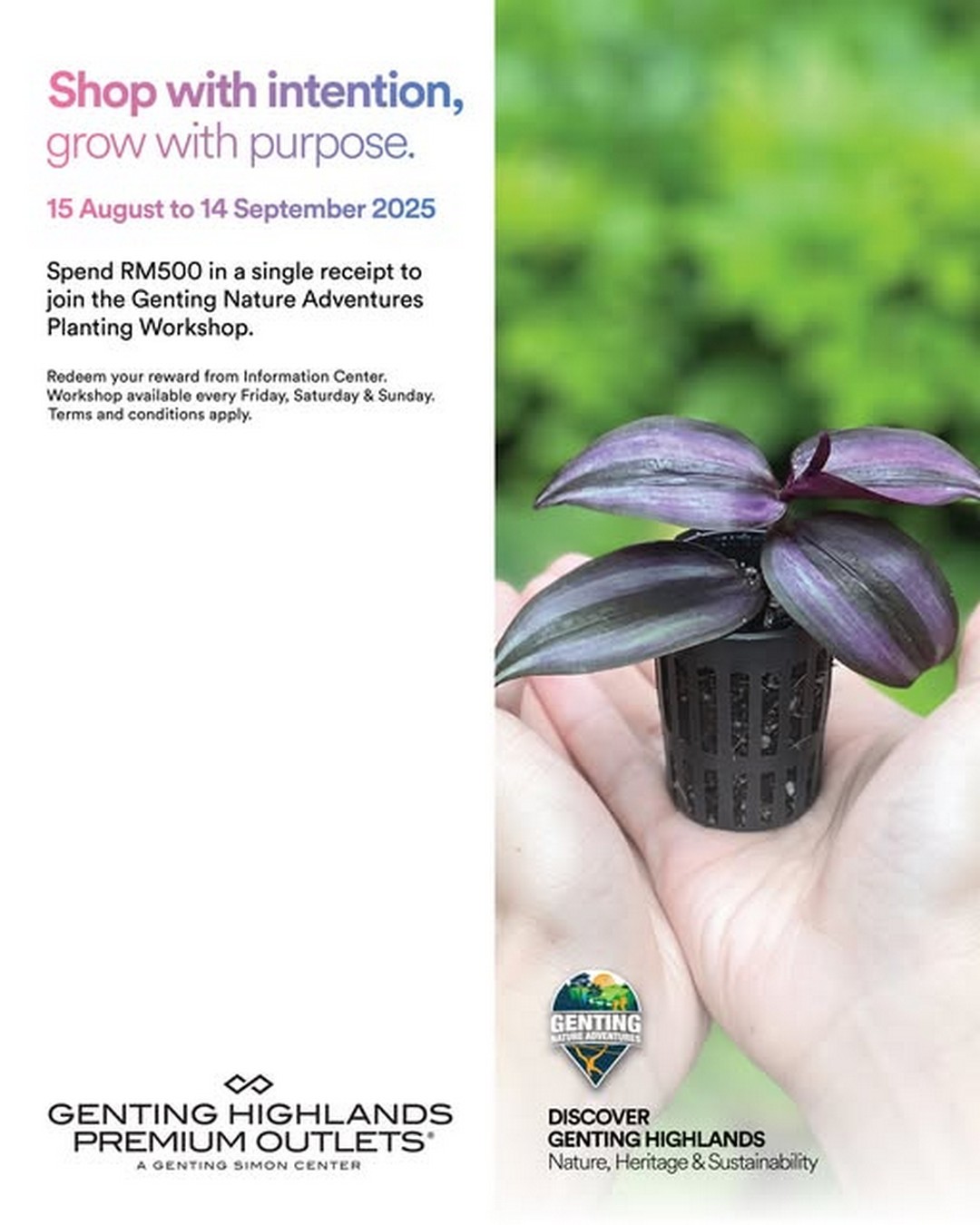 For a limited time, from 15 August to 14 September 2025, Genting Highlands Premium Outlets is offering shoppers a unique workshop experience. All they need to do is spend RM500 in a single receipt, and they can join the workshop. This promotion is perfect for individuals, families, and friends who are keen on connecting with nature while enjoying a rewarding shopping spree.