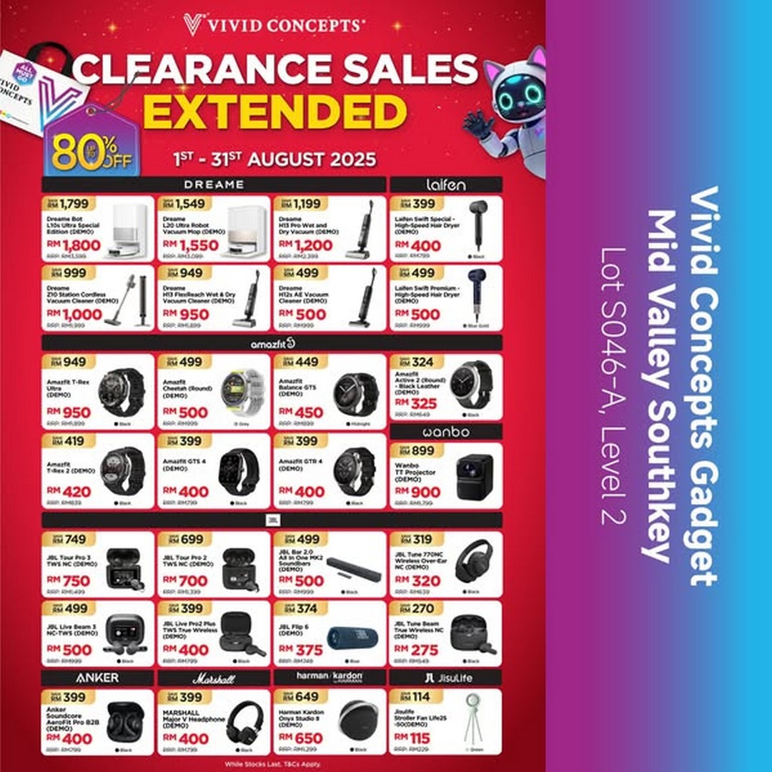 Vivid Concepts has done an excellent job of combining affordability with quality in this extended clearance sale. Shoppers in Malaysia are encouraged to take advantage of this rare opportunity before the sale ends. With multiple outlets available and online contact options for queries, it is an accessible and customer-friendly event for anyone keen on tech bargains.