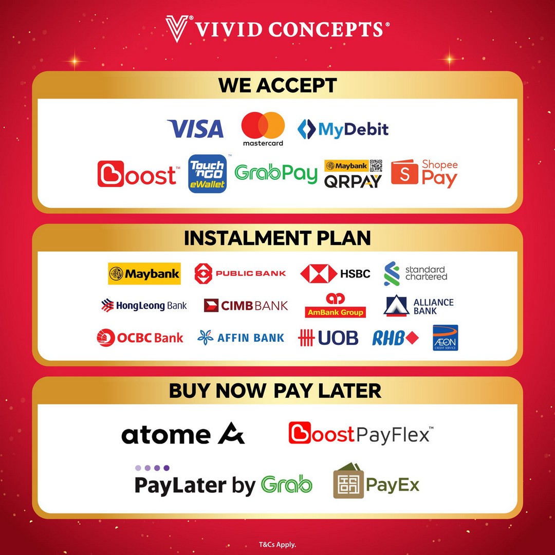 Vivid Concepts stores provide a smooth and convenient shopping environment. Flexible payment options, including eWallets, credit cards, and buy-now-pay-later schemes, make it easier for shoppers to take advantage of these discounts without worrying about immediate cash outflow. For those who prefer to plan their budget carefully, long-term installment plans up to 48 months are available, making even high-end products more accessible.