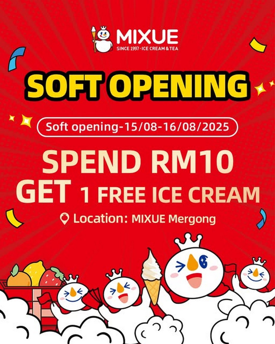 Promotion: Spend RM6 and above, add RM1 for fresh lemonade; Spend RM10, get 1 FREE MIXUE ice cream