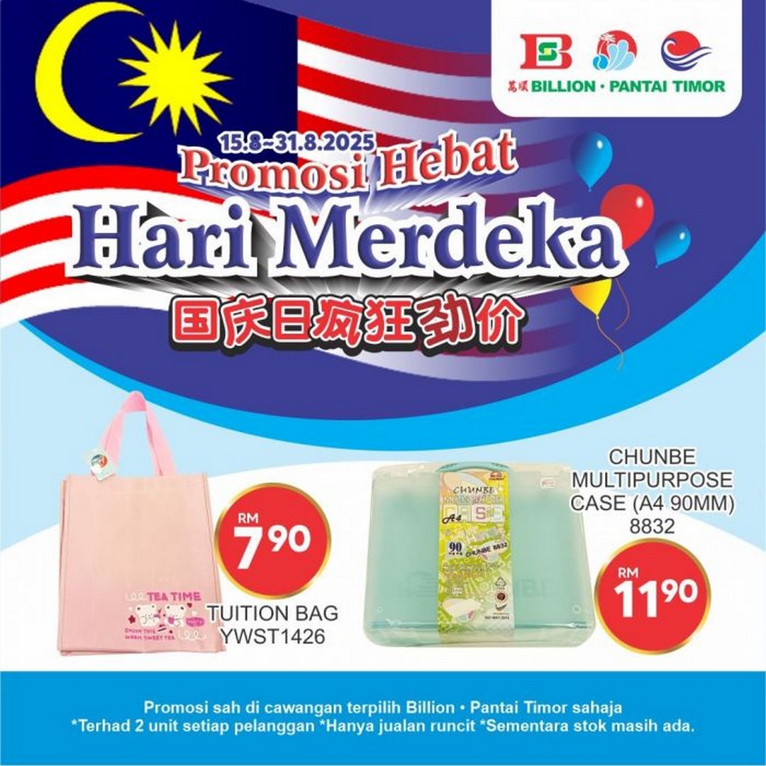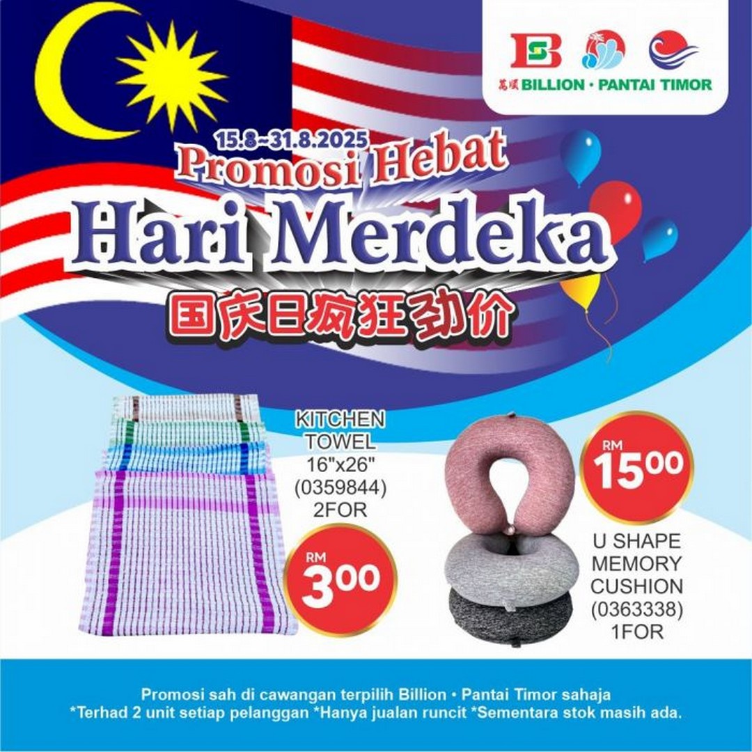 BILLION and Pantai Timor’s Merdeka Promotion is more than just a sale; it is an invitation for families to join in the national spirit, shop smarter, and walk away with genuine savings. So, whether you need kitchen towels, a new cushion for your study chair, or school supplies for the children, this is a deal worth making time for.