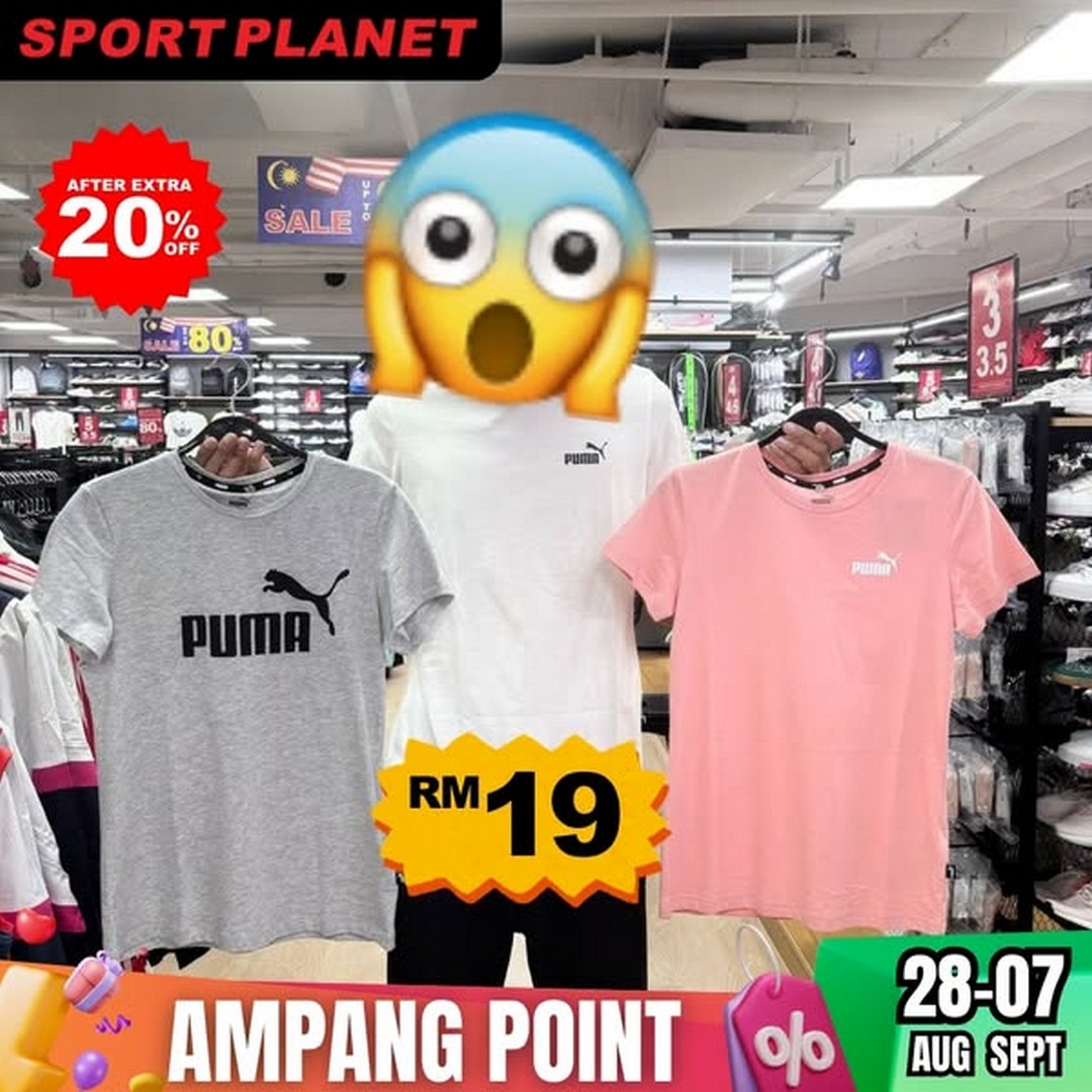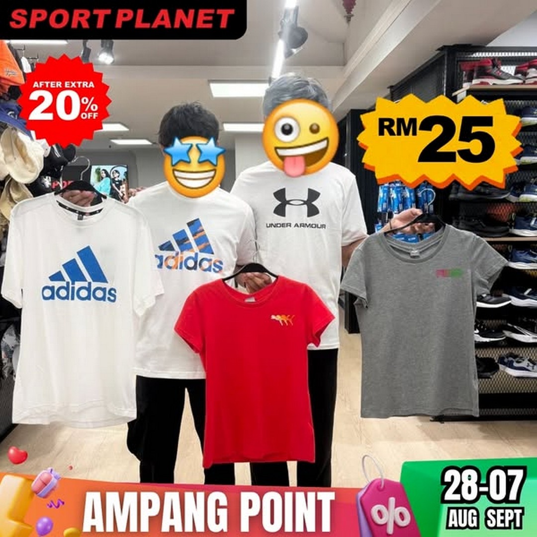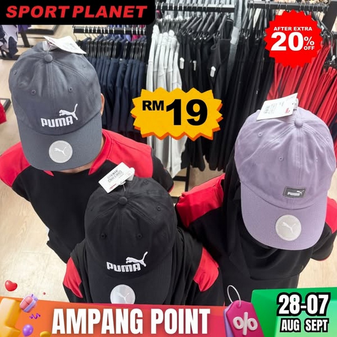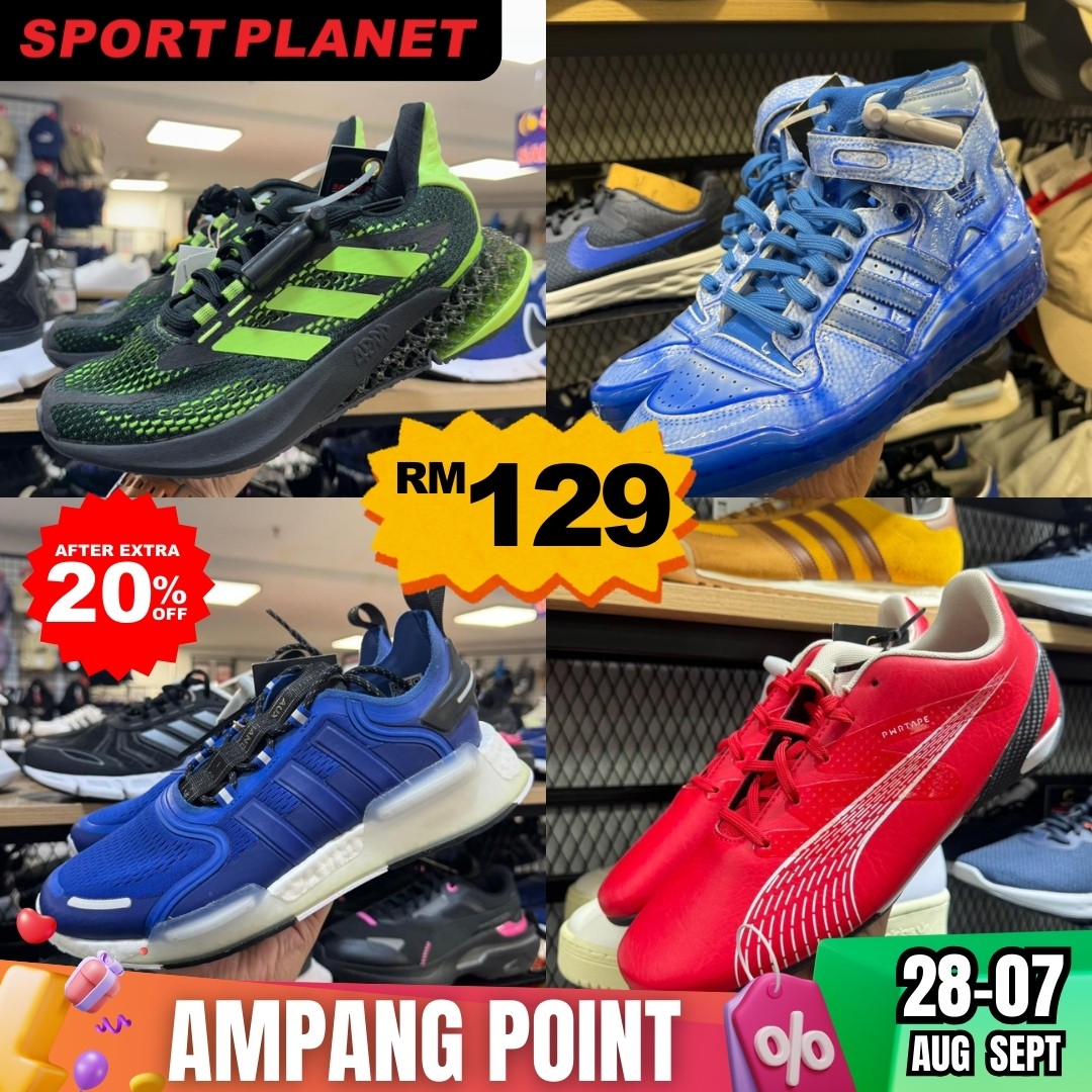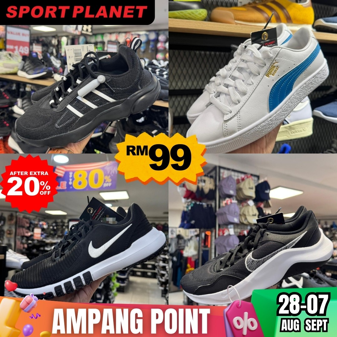 From 28 August to 7 September 2025, Sport Planet at Ampang Point (Level 1) will be rolling out discounts that go as high as 80% OFF on selected sports shoes and apparel. On top of that, there will be an additional 20% OFF stacked on top of already reduced prices. This is a serious clearance-style event, where stock is limited, choices are wide, and deals are meant to move fast.