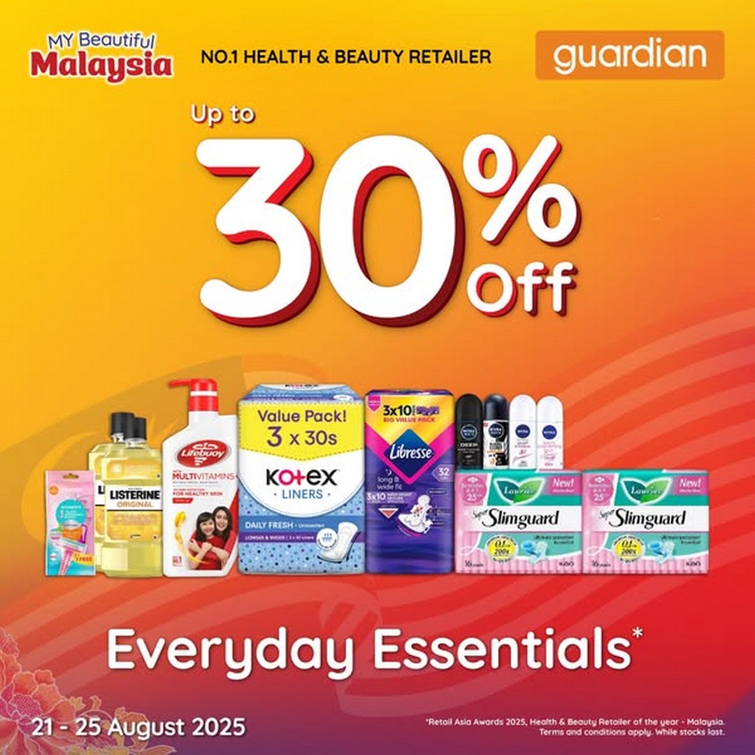 From 21 to 25 August 2025, Guardian Malaysia is rolling out a promotion that many would consider too good to ignore. For just a few short days, shoppers can enjoy up to 30% off on their Daily Essentials Kit. It’s a campaign designed not only to provide savings but also to encourage customers to rethink how they shop for their everyday items.