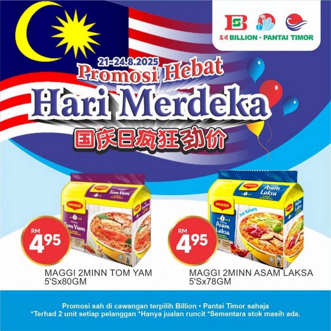 Hari Merdeka is just around the corner, and what better way to celebrate Malaysia’s independence than by grabbing some fantastic deals on household favourites? For shoppers looking to stock up on essentials and treats, BILLION and Pantai Timor have stepped up with a special Nestle Merdeka promotion. From 21 to 24 August 2025, selected outlets are offering unbeatable prices on popular items like Maggi noodles, Kit Kat chocolates, Nescafe 3-in-1, and Everyday milk powder. It’s a limited-time offer that promises both value and convenience for families across Malaysia.