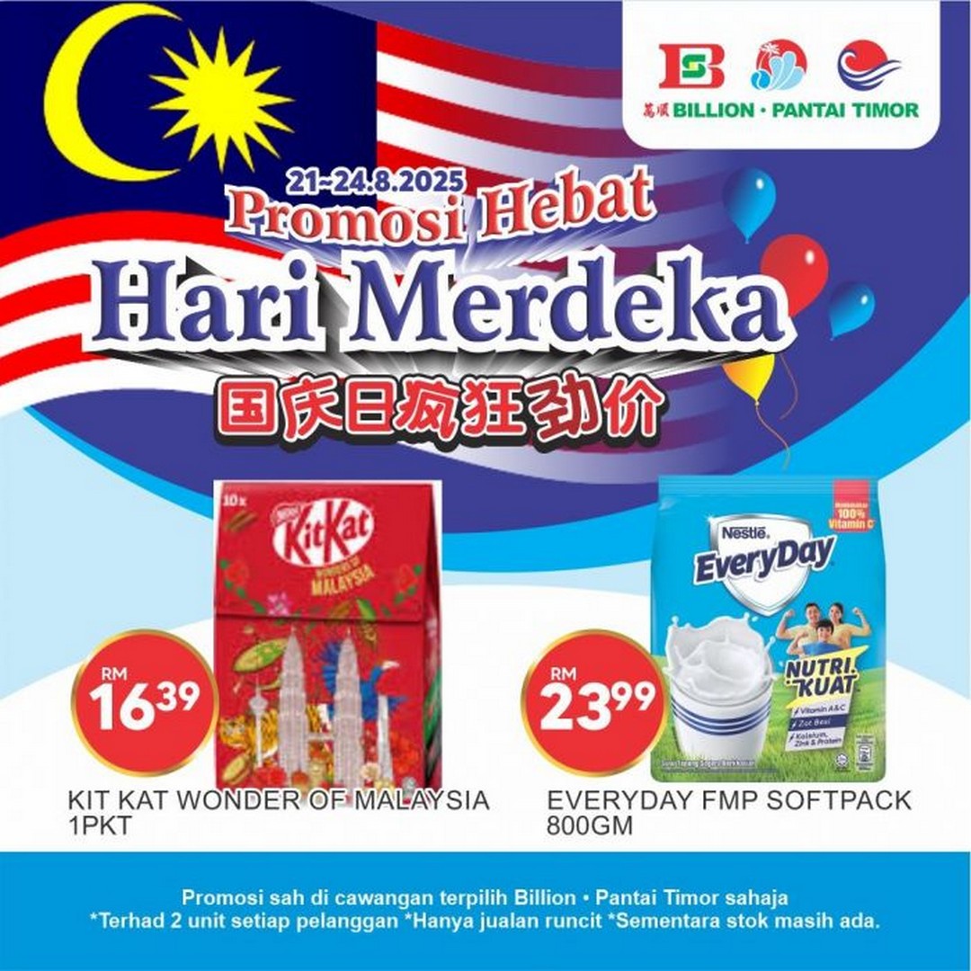 In conclusion, the BILLION & Pantai Timor Nestle Merdeka Promotion is a must-visit for anyone looking to save on household staples and treats. With a variety of products ranging from noodles and chocolates to coffee and milk powder, the promotion offers convenience, value, and variety in one package. The limited period, special prices, and capped purchase policy all create a sense of urgency that makes planning a visit worthwhile. Families, singles, and anyone who enjoys Nestle products have every reason to head to their nearest BILLION or Pantai Timor outlet between 21 and 24 August 2025 and take advantage of these incredible deals.